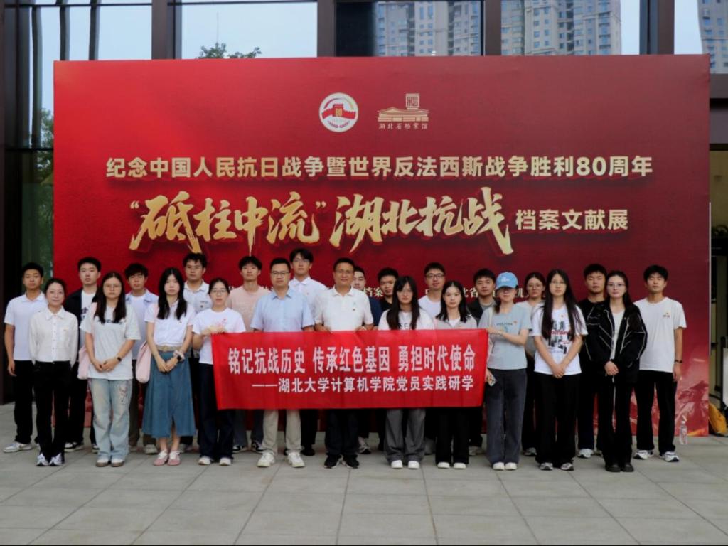 在中华人民共和国成立76周年暨世界反法西斯战争和中国人民抗日战争胜利80周年之际,为深切缅怀革命先烈、传承红色精神,9月30日上午,“湖北大学-贵州税务”研究生工作站党支部联合湖北大学计算机学院教工第三党支部、研究生第一党支部,组织党员师生走进湖北省档案馆花山新馆、武汉抗战纪念园及湖北军民抗战博物馆,开展以“铭记抗战历史,传承红色基因,勇担时代使命”为主题的党员实践研学活动。