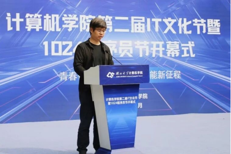随后,学院团委负责人潘洒详细介绍了第二届IT文化节及1024程序员节的活动安排,论坛报告类、科创实战类、文化交流类、朋辈引领类等四大板块活动将带领计算机学子全方位领略计算机学科的魅力,让师生们对后续活动充满期待。